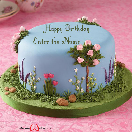 Flower Garden Birthday Cake With Name Edit Best Wishes Birthday Wishes With Name